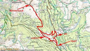 Vorgestern waren wir mit den MTB's auf dem Oswaldiberg; heute sind wieder die Bergschuhe dran.Eli hat den Rinsennock ausgesucht. Letztes Jahr waren wir östlich der Turracher Höhe auf dem Speikkofel und heute geht es westlich der Turracher Höhe eben auf den Rinsennock. Der Rinsennock könnte ganz leicht von der Turracher Höhe aus bestiegen werden oder noch leichter in dem man mit demSessellift bis auf den Kornock fährt, 150 Hm unter dem Gipfel des Rinsennocks. Das ist jedoch nicht unser Ziel. Wir starten von der Brücke über den Stangenbach (gleich nach der Abzweigung der mautpflichtigen Nockalmstraße) bei Unter Winkel, Teil der Fraktion Winkl Reichenau. Um neun starten wir. Auf der Teerstraße zu den Bauernhöfen von Unter Winkl und an diesen vorbei. Kurz vor dem Wald geht rechts der Steig Nr. 149 ab. Wir übersehen ihn und gehen auf der Straße weiter, da wir einen Wegweiser erwarten. Ein Stück weiter überzeugt uns ein Blick aufs Handy, dass wir schon an der Abzweigung vorbei sind. Zurück und dieses Mal finden wir die Abzweigung. Vollkommen unscheinbar und offensichtlich wenig begangen. Und dieser Zustand bleibt bestehen; teilweise ist der Steig von Brennesseln überwachsen, lange Hosen sind von Vorteil. Bei Winkl Reichenau kommen wir an einem Hof vorbei und entschuldigen uns beim Besitzer, dass wir durch seinen Hof durchgehen. Er findet nichts dabei und sagt uns, dass der Steig effektiv hier durchgeht. Nach dem Hof finden wir uns auf einer Teerstraße wieder; ein paar Meter weiter geht es steil einen Steig bergan. Dann sind wir wieder auf einer Straße; diese geht in eine Forststraße über, sobald wir den Wald erreicht haben. Wir folgen der Markierung und zweigen bald von der Straße ab. Der Steig quert noch dreimal eine Forststraße, laut Karte nicht immer die gleiche. Auf ca. 1640 m verlassen wir den Wald und es geht einen Rücken bergan; dieser ist angangs noch leicht mit Bäumen bestanden. 100 Hm weiter bleibt der Wald endgültig zurück und wir sind oberhalb der Waldgrenze. Einige Kühe verfolgen unseren Anstieg und weiter oben scheint schon das Gipfelkreuz herunter zu winken. Aber weit gefehlt; sobald wir näher kommen, stellen wir fest, dass es sich um einen Wegweiser handelt. Hier kommt der Nockbergtrail von der Turracher Höhe herauf. Ohne Anglizismen geht heute in der Werbung nichts mehr; ein schnöder Nockbergewanderweg hätte keine Anziehungskraft, o pardon Appeal, auf would-be-hiker. Jedenfalls treffen wir jetzt auf andere Wanderer, neudeutsch hiker. Die meisten davon im Abstieg. Jetzt kommt das richtige Gipfelkreuz in Sicht und uns trifft fast der Schlag. Um das Gipfelkreuz steht eine Horde von Leuten herum und ein stetiger Strom kommt von der anderen Seite vom Kornock, der Bergstation der Kornockbahn, herauf. Bald sind wir am Gipfel. 3 Stunden und 10 Minuten sind seit dem Start vergangen und ca. 1220 Hm liegen hinter uns. Rechts von uns leuchtet der Turrach See herauf und jenseits der Turracher Höhe sehen wir die Gipfel, die wir in den vergangenen Jahren abgegangen sind: Schoberriegel, Gruft, Kaserhöhe, Hoazhöhe, Bretthöhe und Lattersteighöhe sowie die beiden Speikkofel und den Torer. Wir suchen uns dann etwas abseits einen Platz zum Hinsetzen und marenden. Hinter uns geht das stetige Kommen und Gehen weiter. Viele kommen von der Bergstation und gehen dann über den Trail zurück zur Passhöhe. Wir machen uns dann auch an den Rückweg und sind bald wieder alleine. Nur die Kühe schauen uns stumm zu; was sollten sie auch sagen, vielleicht "muuuuhhhhh". Wir lassen es gemütlich angehen und bei Winkl Reichenau folgen wir der Teerstraße auf der Suche nach einem Steig, der uns das Brennesslgestrüpp des Aufstiegweges vermeiden lässt. Wir finden die Abzweigung, die sich aber dann im Wald verliert. Fast weglos finden wir dann einige Gebäude, an denen der Steig laut Karte vorbei gehen sollte. Scheint aber so wenig begangen zu sein, wie der Anstiegsweg und wir finden ihn nicht. Es geht also die Straße entlang bis diese in die Hauptstraße von der Turracher Höhe mündet. Von dort trotten wir die Hauptstraße entlang bis wir wieder beim Auto sind.