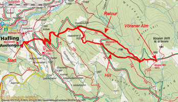 | Ausgangspunkt | Hafling Parkplatz unterm Meßnerwirt (1275 m) |