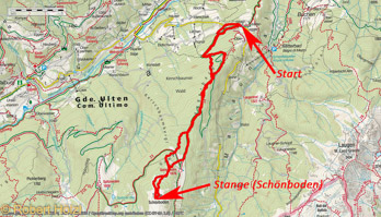 Ich habe mit Leni und Andreas für heute eine Schitour vereinbart. Aufgrund der Lawinenlage kommen eigentlich nur wenige Ziele in Frage. Wir entscheiden uns für die Stange, einem kleinen Gipfel oberhalb der Gampenalm im Kamm der von der Straße zum Hofmahdjoch beim Egger Richtung Kornigl führt