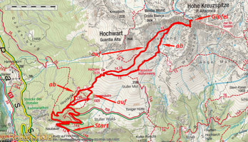 | Abstieg | ca. 1150 Hm, 2 Stunden 40 Minuten |