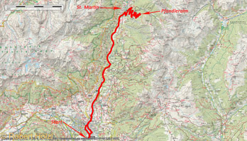 Eli und ich wollen am heutigen Sonntag wieder eine Radtour unternehmen. Als Ziel haben wir uns etwas in Passeier ausgesucht. Vor 1o Tagen war ich zur Pfistradalm gefahren und es war schwerer als zum Naserhof; bin zwar fast alles gefahren, aber musste doch 2 Mal absteigen und schieben . Heute soll es zur Pfandleralm oberhalb von St. Martin gehen. Der Höhenunterschied ist gleich wie beim Naserhof und bei der Pfistradalm, aber es weniger weit als bei der Pfistradalm und laut Karte mehr Forststrasse mit mehr Kehren, also potentiell etwas weniger schwer.