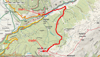 Um acht in Meran los und um halb zehn in Planeil gestartet. Es liegt Schnee, aber ausgetreten. Im Tal pfeift ein eisiger Wind und es fühlt sich kälter an, als es die Temperatur suggerieren würde (Windchill). Die Schneeschuhe bleiben am Rucksack. Zuerst geht's ein paar Meter ins Planeiler Tal weiter, bevor wir nach rechts abzweigen. Über eine Forststrasse gewinnen wir langsam Höhe. Da ich fotografierend etwas zurück bleibe und Bernd ausser Sicht verliere, folge ich bei einer Abzweigung der offensichtlichen Spur. Mir kommen aber schnell Zweifel, die von einem Blick ins Handy bestätigt werden. Umkehr und dann richtig weiter. Außer uns kein Mensch unterwegs. Hier im Wald ist es zwar auch kalt, aber kein Wind mehr, wodurch es fast angenehm wird. Bald verlassen wir die Forststrasse und folgen einem Steig. Wir queren zwei Lawinenstriche; derzeit aber keine Gefahr. Knapp unterhalb der Waldgrenze, vielleicht hundertfünfzig Meter unter dem Gipfel, kommen dann doch die Schneeschuhe zum Einsatz. Es gibt zwar Wildspuren, aber wir müssen selbst spuren. Anstrengend; wir wechseln uns ab. Dann ist der Gipfel erreicht. Wir gehen alle Erhöhungen ab, bevor wir zum Kreuz gehen, das etwas tiefer liegt, um vom Tal aus gesehen zu werden. Niemand da; die Südseite ist komplett aper. Wir machen es uns ein bißchen unterhalb des Kreuzes im Windschatten bequem und genießen die schwache Wintersonne. Wir lassen uns Zeit. Kurz verständigen wir uns, dass wir beide keine Lust haben Richtung Nieder- und Hochjoch weiter zu gehen. Erstens waren wir beide schon oft auf beiden Gipfeln und zweitens reicht es uns auch so. Während wir gemütlich marenden, hören wir ober uns eine Stimme. Die Wandererin, der Aussprache nach eine Deutsche, velässt den Gipfel aber bald wieder. Nach geraumer Zeit machen auch wir uns zum Abstieg bereit. Die Schneeschuhe kommen wieder an die Schuhe und bald sind wir wieder im Schatten. Im Abstieg lassen wir die Schneeschuhe an bis kurz vor Planeil. Ist einfach angenehmer so im Abstieg. Nach insgesamt 3 3/4 Stunden sind wir wieder beim Auto.