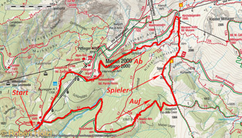| Ausgangspunkt | Parkplatz Falzeben (1620 m) |