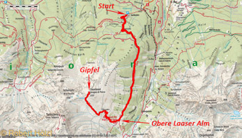 | Stützpunkt | Obere Laaser Alm (2047 m) |