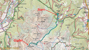 | Persönliche Bewertung | *** ca. 12,4 km; wolkenloser Himmel und kaum Leute unterwegs, schöner Gipfel; Zufahrt zu Startpunkt Mautstrasse (Euro 6 für hin und retour 6 km, aber Parkplatz ist inbegriffen). |