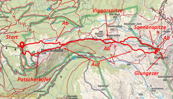 | Aufstieg | ca. 1150 Hm mit Gegenanstiegen, 3 Stunden 40 Minuten bis Glungezer |