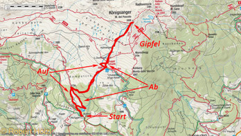 Schon länger her, dass Bernd und ich zusammen eine Tour unternommen haben. Bernd hat sich jetzt überzeugen lassen, dass der Winter Einzug gehalten hat und somit die Schneeschuhe an der Tagesordnung sind. Als Ziel wählen wir den Königanger aus; Kein Lawinengefahr, wenn auch an einem Samstag und bei schönem Wetter einiges los sein dürfte.