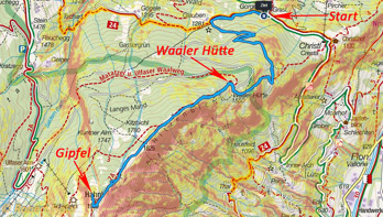 | Aufstieg | ca. 825 Hm, 2 Stunden 20 Minuten |
