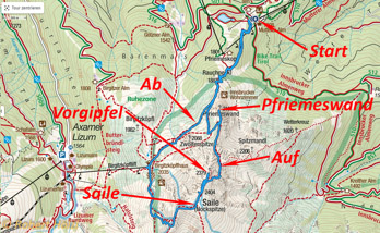 | Aufstieg | ca. 880 Hm, 2 Stunde 5 Minuten (inkl. Pfriemeswand und Vorgipfel) |