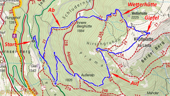 | Ausgangspunkt | Parkplatz vor Abzweigung Gialhöfe (1540 m) |