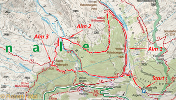 | Persönliche Bewertung | ** ca. 8,8 km. Schönes Wetter, Vordere Flatschbergalm geöffnet, nur 2 Leute getroffen, Teil zwischen Tuferalm und Äußerer Pilsbergalm nicht gespurt. |