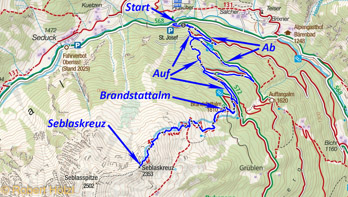 | Stützpunkt | Brandstattalm (1810 m), empfehlenswert! |