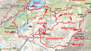 | Persönliche Bewertung | *** ca. 12,3 km; schönes Wetter und sehr heiß; am Nagelstein einige Leute unterwegs, auch am Schmelzbichl beim Abstieg. |