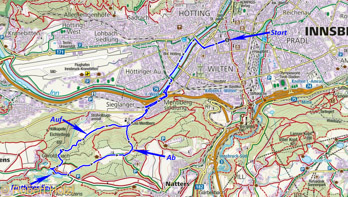 | Route | Innrain, Straße, Steig 6A (Geroldsschluchtweg), Straße, Steig 5, Andreas-Hofer-Weg, Straße Innrain |
