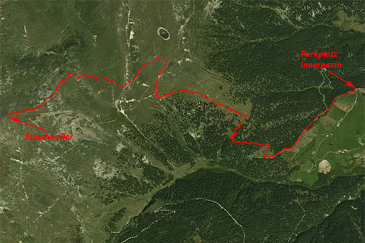 Wetterberic ht hat für den Tag bewölkt mit Regen ab Nachmittag angesagt. Wir haben daher etwas nicht zu Langes mit eher frühem Start für die Jahreszeit ausgesucht. Wir waren beide noch nie auf diesem Gipfel, was ein zusätzlicher Ansporn war. Um sieben in Meran los; bis zum Parkplatz nach Außerpazin dauert es etwas, so dass wir erst um 08:30 h gestartet sind. Wetter wie vorhergesagt, viel Wolken und Nebel. Es geht gleich recht anständig bergauf und dabei bleibt es auch. Zu Beginn ist die Temperatur recht angenehm und es geht auch kein Wind. Ab der Tschagainhütte, d.h. sobald wir den Wald verlassen und uns dem Kamm nähern, ändert sich dies fast schlagartig. Es beginnt ein recht kalter Wind zu blasen, der am letzten Anstieg zum Plaschweller in einen eiskalten Föhnsturm ausartet. Ab der Hütte hüllt uns auch ein Nebel ein, der die Sich zeitweise auf ein paar Meter einschränkt. Am Gipfel angekommen, drehen wir gleich um und steigen ab.Ursprünglich wollten wir auch noch das Glurnser Köpfl mitnehmen, aber der Wind hat uns den Ansporn genommen und wir steigen direkt zur Tschagainhütte ab. Erst dort rasten wir und essen etwas. Von da an nimmt der Wind ab unddie Temperatur steigt etwas; auch die Wolkendecke reißt zwischendurch auf und es kommt manchmal ein Stück blauer Himmel zum Vorschein. In Matsch scheint sogar die Sonne und soweit man sehen kann, gibt es auf der Ostseite der Portlesspitze praktisch noch keinen Schnee. Könnte etwas für das nächste Wochenende sein. Um kurz nach 13:00 h sind wir wieder beim Auto.