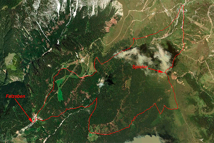 Spieler, die Erste. Zumindest was den Sommer angeht (also ohne Schi oder Schneeschuhen). Ich war gestern spät abends (gegen 23:00 h) von meinem Schitourenurlaub auf Island zurückgekommen. Wegen meines Rückenproblems, das ich mir kurz vor der Abfahrt eingefangen hatte, habe ich den Urlaub größtenteils auf der Yacht verbracht und war nur zweimal kurz auf Schiern unterwegs. Sehen wir es posi tiv; da das Wetter größtenteils schlecht bis sehr schlecht war und die anderen teilweise in einem Whiteout unterwegs waren, tat es mir nicht so sehr leid, dass ich nichts tun konnte. Abfahrten im Whiteout habe ich schon gehasst, als ich noch zwei gute Knie hatte. Jedenfalls hatte ich einfach das Verlangen, um jeden Preis wieder einmal an der frischen Luft zu sein. So habe ich nach langem Schlaf und einem späten Frühstück trotz des bescheidenen Wetters aufgerafft und bin nach Falzeben gefahren. Dort um halb zwei gestartet. Bei dauerndem Nieselregen über den Forstweg mit anfänglichem Höhenverlust zur Moschwaldalm und weiter zur Maiseralm. Bereits nach der Moschwaldalm musste ich immer wieder Schneestücke überqueren oder ihnen ausstellen. Ein paar hundert Meter vor dem Kreuzjoch begann die geschlossene Schneedecke. Da ich nur Laufschuhe anhatte (zwar mit Gore-Tex, aber das nützt nichts, wenn der Schnee von oben herein kommt), war es das reinste Balletttanzen, um nicht allzusehr einzubrechen. Nach knapp zwei Stunden war ich dann am Gipfel. Kurze Rast und weiter ging es Richtung Meraner Hütte. Ironie des Schicksals: Vor ca. einem Monat war ich mit den Schiern hier unterwegs und musste diese vom Gipfel bis zum Weg zur Meraner Hütte hinunter tragen, da kein Schnee lag. Diesmal war es umgekehrt; ic h musste mir mühsam einen Weg hinunter suchen, bei dem ich nicht bei jedem Schritt bis über die Knie im Schnee stecken würde. Mein gezerrter rechter Oberarm hat diesen Abstieg, bei ich mich stark auf die Stöcke stützen musste, überhaupt nicht goutiert. Bis zur Meraner Hütte lag zwar Schnee auf dem Weg, dieser war aber so kompakt, dass ich nicht oder nur kaum eingebrochen bin. Ab der Talstation des Kesselbergliftes habe ich den unteren Wanderweg zur Rotwandhütte und weiter zum Zuegghaus genommen. Von da war ich bald wieder beim Auto. Insgesamt 4 Stunden hat die Tour gedauert. Ich war k.o. Die ganze vergangene Woche entzündungshemmende Medikamente gegen meinen schmerzenden Rücken schlucken, hat sich nachteilig auf meine Kondition ausgewirkt. Das Wetter war wie es war: bescheiden. Es hat die ganze Zeit über genieselt; zum Glück nie wirklich geregnet. Den Abschluss hat dann die Pizza bei Hermann gebildet. Er hat eine neue Speisekarte mit einigen neuen Pizzas. Die Pizza ist immer noch phänomenal und preislich moderat.