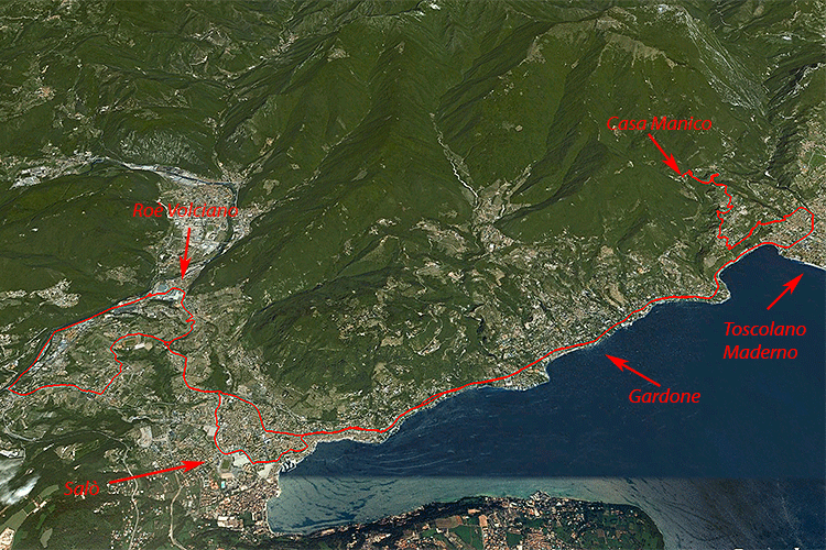 Schiebetour (Radtour 1): Casa Magnico - Supiane - Abstecher Richtung Lavino Superiore - P.te Ferdinando - Fassano - Maderno-Toscolano - Cecina - Gaino - Gatto Caneto - Sanico - Casa Magnico