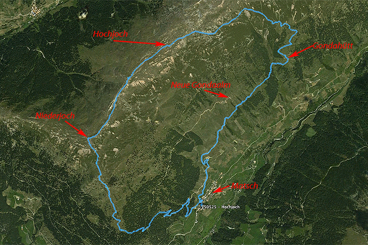 Alles in allem eine schöne Tour bei akzeptablem Wetter und keinen Leuten. Jetzt kenne ich auch den Weg über die Gondahütt. Tour ist für den Frühjahr (apert bald aus) und den Spätherbst (Lärchen) sehr zu empfehlen und eigentlich nie wirklich überlaufen. Die meisten Leute bleiben auf der Spitzigen Lun oder kommen höchstens bis zum Niederjoch. Das Hochjoch als Mugel im Kamm der über Jafant zu den Portlesspitzen führt und kein Kreuz aufweist, scheint kein interessantes Ziel zu sein. Um so besser. ;-)